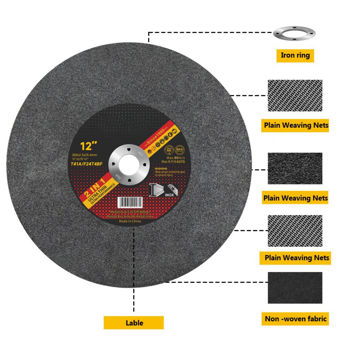 Những tính năng này làm cho đĩa cắt 12 inch của chúng tôi trở nên tuyệt vời trong việc cắt kim loại và đáp ứng các tiêu chuẩn về an toàn và hiệu suất của môi trường công nghiệp.