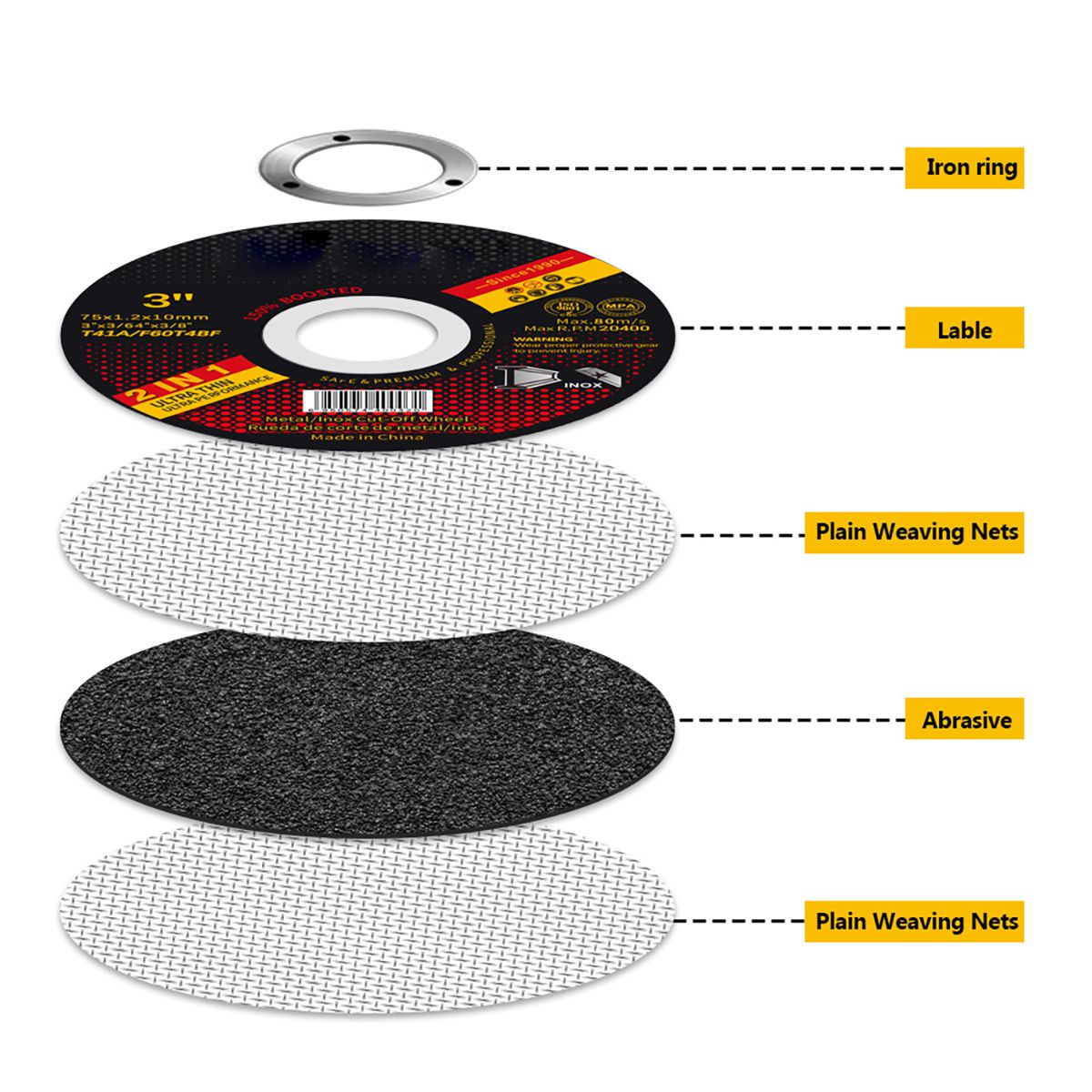 - Công nghệ gia cố lưới sợi thủy tinh kép: Tăng cường khả năng chống nứt của bánh cắt và thích ứng với hoạt động tốc độ cao 20.300 vòng/phút