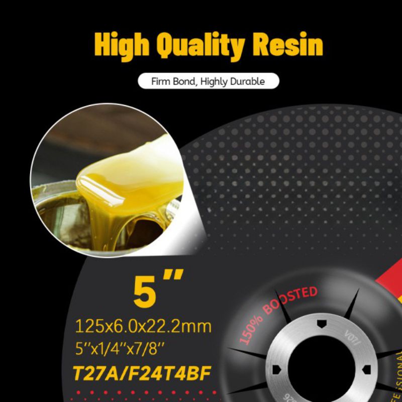 Đĩa mài 5 inch này chủ yếu được sử dụng để xử lý sơ bộ thép, mài mối hàn và cắt cạnh linh kiện. Sản phẩm phù hợp cho việc gia công nền kim loại trong xưởng đóng tàu, san phẳng bề mặt các bộ phận kết cấu xây dựng và các hoạt động mài ba via nhanh trong xưởng gia công. Kích thước 125×6.0x22.2mm T27 của sản phẩm tương thích với các thiết bị thương hiệu phổ thông và có thể được sử dụng thay thế cho đá mài Norton hoặc các sản phẩm tương tự của Klingspor.